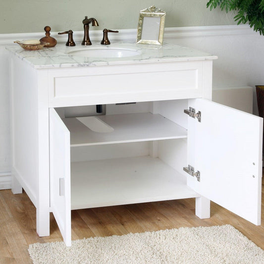 Duko Venice 36" Wooden Vanity Set With White Cararra Marble Tabletop, Rectangular Single Basin and Drawer Cabinet White