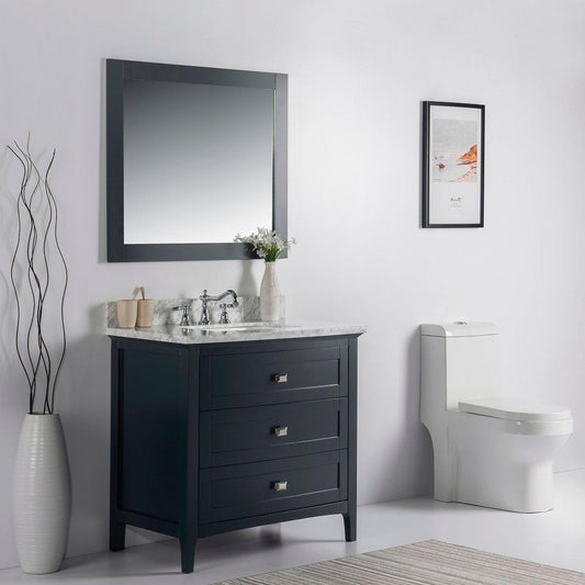 Bellaterra Home Milani 36" 3-Drawer Dark Gray Freestanding Vanity Set With Ceramic Undermount Rectangular Sink and White Carrara Marble Top