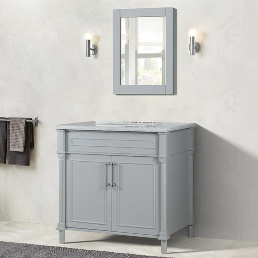Duko Venice 36" Wooden Vanity Set With White Cararra Marble Tabletop, Rectangular Single Basin and Drawer Cabinet Gray