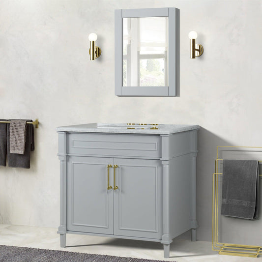Bellaterra Home Napa 36" 2-Door Gray Freestanding Vanity Set With Ceramic Undermount Rectangular Sink and White Carrara Marble Top, and Gold Hardware