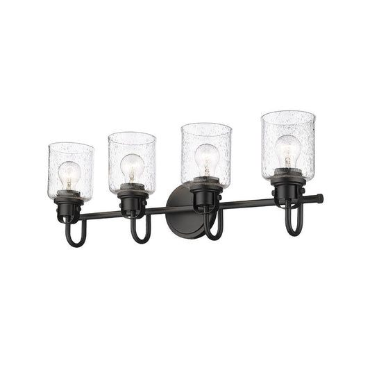 Z-Lite Kinsley 28" 4-Light Matte Black Vanity Light With Clear Seeded Glass Shade