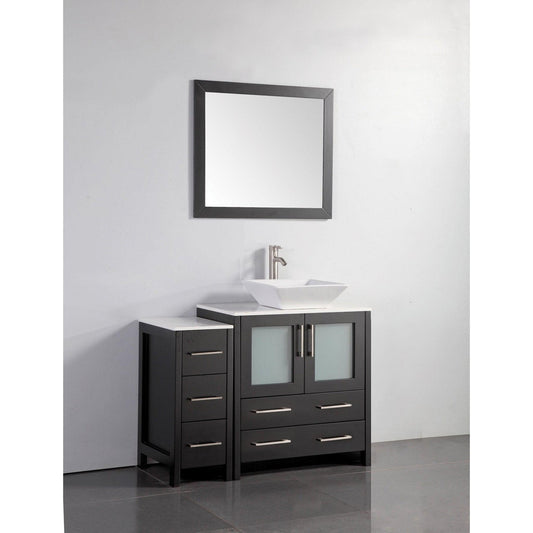 Vanity Art Ravenna 42" Single Espresso Freestanding Vanity Set With White Engineered Marble Top, Ceramic Vessel Sink, 1 Side Cabinet and Mirror