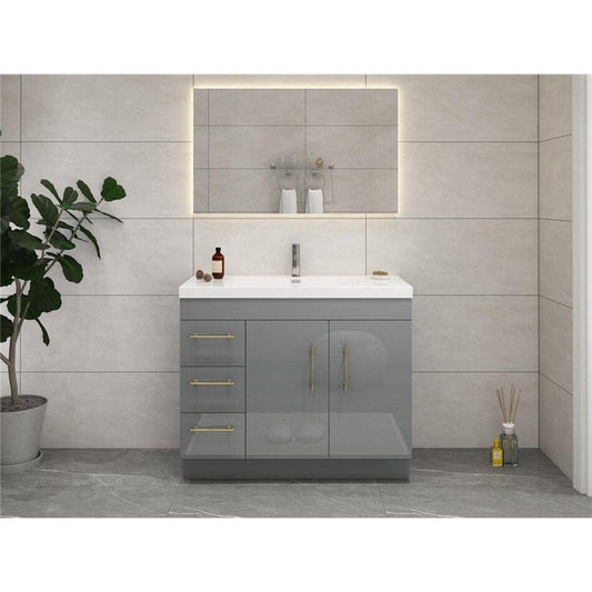 Moreno Bath ELSA 42" High Gloss Gray Freestanding Vanity With Left Side Drawers and Single Reinforced White Acrylic Sink