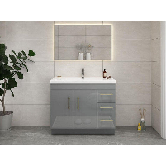 Moreno Bath ELSA 42" High Gloss Gray Freestanding Vanity With Right Side Drawers and Single Reinforced White Acrylic Sink