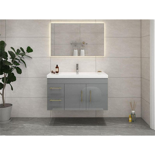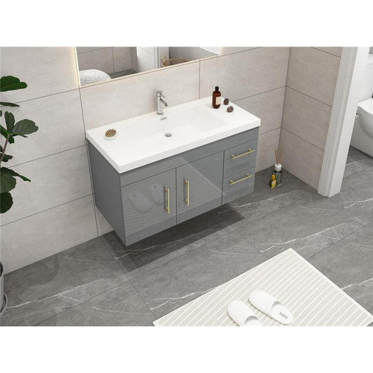 Moreno Bath ELSA 42" High Gloss Gray Wall-Mounted Vanity With Right Side Drawers and Single Reinforced White Acrylic Sink