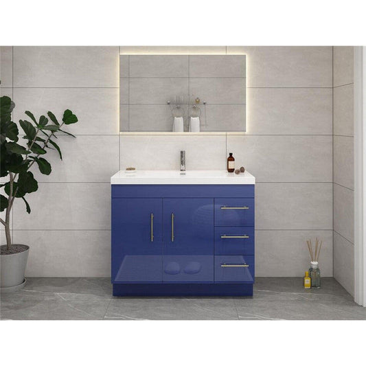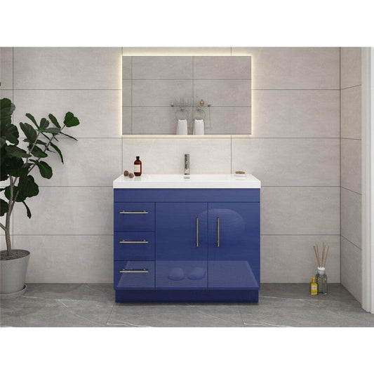 Moreno Bath ELSA 42" High Gloss Night Blue Freestanding Vanity With Left Side Drawers and Single Reinforced White Acrylic Sink
