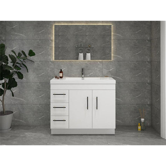 Moreno Bath ELSA 42" High Gloss White Freestanding Vanity With Right Side Drawers and Single Reinforced White Acrylic Sink
