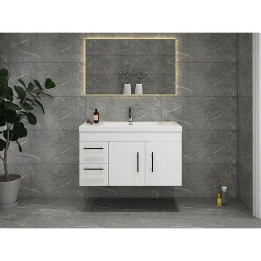 Moreno Bath ELSA 42" High Gloss White Wall-Mounted Vanity With Left Side Drawers and Single Reinforced White Acrylic Sink