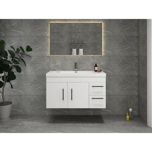 Moreno Bath ELSA 42" High Gloss White Wall-Mounted Vanity With Right Side Drawers and Single Reinforced White Acrylic Sink