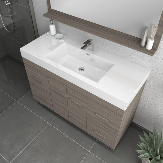 Alya Bath Ripley 48" Single Gray Modern Freestanding Bathroom Vanity With Integrated Acrylic Top, Acrylic Sink and Wall Mounted Mirror
