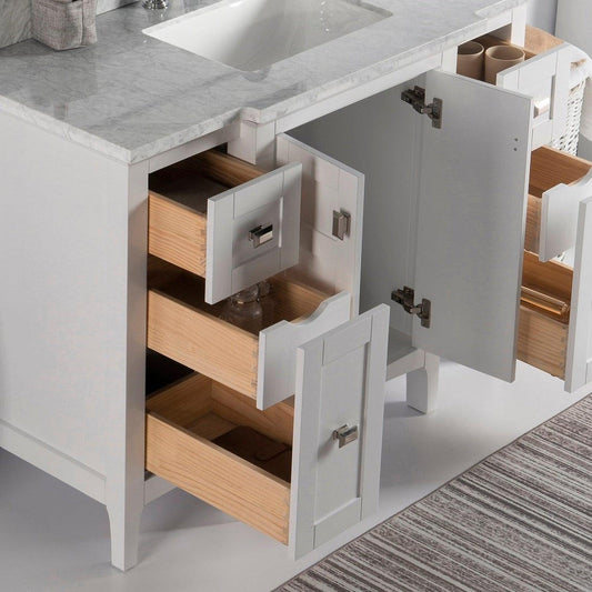 Bellaterra Home Napa 48" 2-Door 4-Drawer White Freestanding Vanity Set With Ceramic Undermount Rectangular Sink and White Carrara Marble Top, and Brushed Nickel Hardware