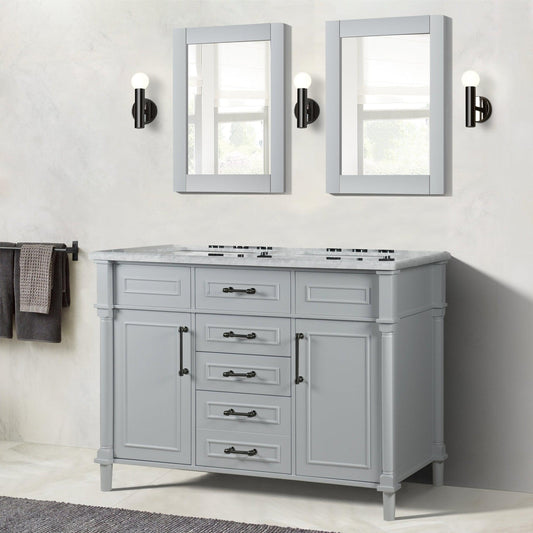 Bellaterra Home Napa 48" 2-Door 4-Drawer Gray Freestanding Vanity Set With Ceramic Double Undermount Rectangular Sink and White Carrara Marble Top, and Brushed Nickel Hardware