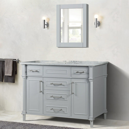 Duko Venice 48" Wooden Vanity Set With White Cararra Marble Tabletop, Rectangular Single Basin and Drawer Cabinet Gray