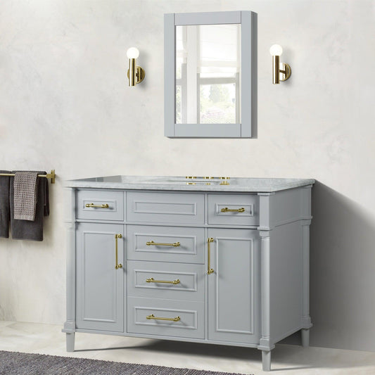 Bellaterra Home Napa 48" 2-Door 4-Drawer Gray Freestanding Vanity Set With Ceramic Undermount Rectangular Sink and White Carrara Marble Top, and Gold Hardware