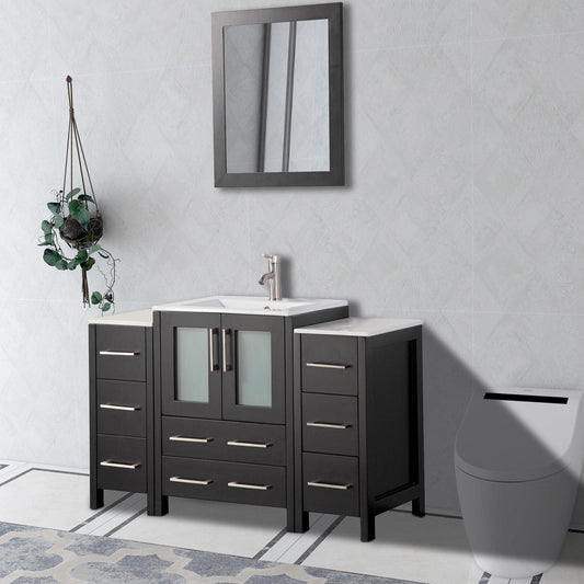 Vanity Art Brescia 48" Single Espresso Freestanding Modern Bathroom Vanity Set With Integrated Ceramic Sink, 2 Side Cabinet and Mirror