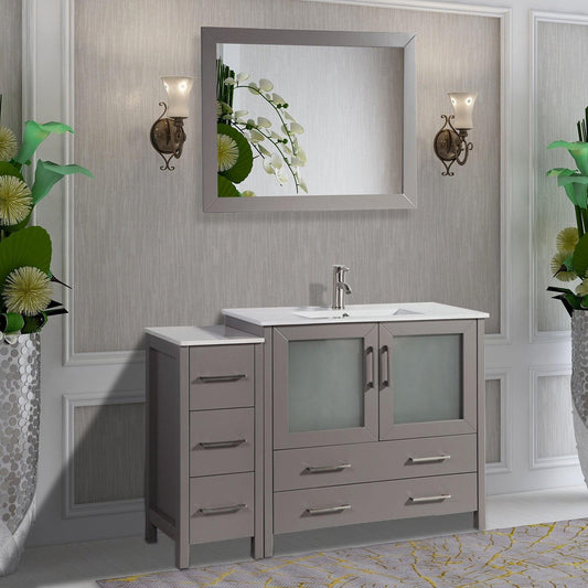 Vanity Art Brescia 48" Single Gray Freestanding Modern Bathroom Vanity Set With Integrated Ceramic Sink, 1 Side Cabinet and Mirror