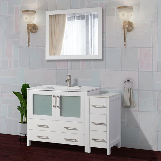Vanity Art Brescia 48" Single White Freestanding Modern Bathroom Vanity Set With Integrated Ceramic Sink, 1 Side Cabinet and Mirror