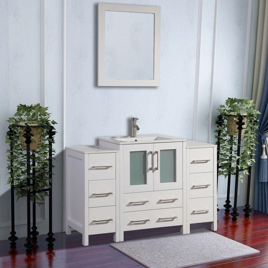 Vanity Art Brescia 48" Single White Freestanding Modern Bathroom Vanity Set With Integrated Ceramic Sink, 2 Side Cabinet and Mirror