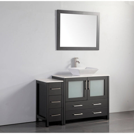 Vanity Art Ravenna 48" Single Espresso Freestanding Vanity Set With White Engineered Marble Top, Ceramic Vessel Sink, 1 Side Cabinet and Mirror