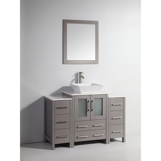 Vanity Art Ravenna 48" Single Gray Freestanding Vanity Set With White Engineered Marble Top, Ceramic Vessel Sink, 2 Side Cabinet and Mirror