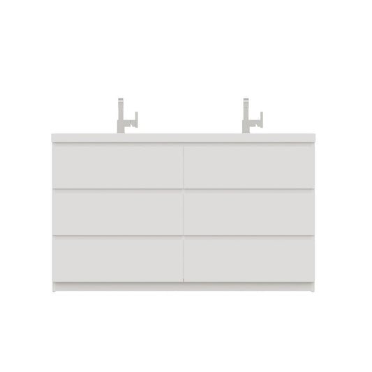 Alya Bath Paterno 60" Double White Modern Freestanding Bathroom Vanity With Acrylic Top and Integrated Sink