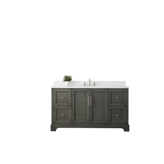 Vanity Art Vannes 60" Single Silver Gray Freestanding Vanity Set With Engineered Marble Countertop and Integrated Sink