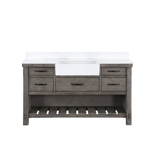 Vinnova Villareal 60" Single Bath Vanity In Classical Grey With Composite Stone Top In White Finish And White Farmhouse Basin