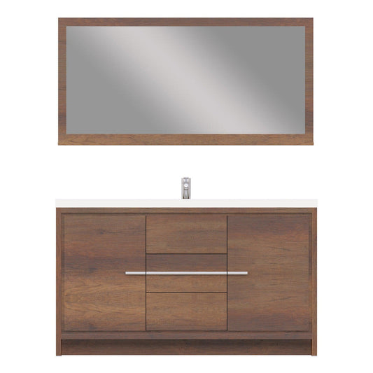 Alya Bath Sortino 60" Single Rosewood Modern Freestanding Bathroom Vanity With Acrylic Top and Integrated Sink
