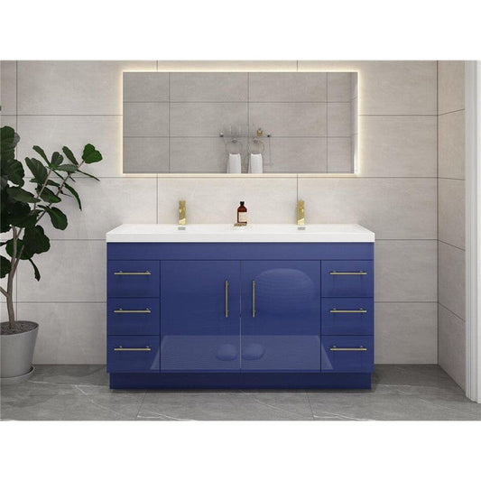 Moreno Bath ELSA 60" High Gloss Night Blue Freestanding Vanity With Double Reinforced White Acrylic Sinks