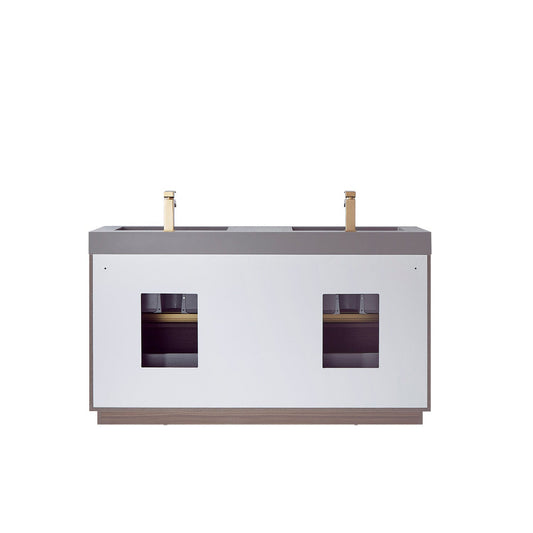 Vinnova Huesca 60" Double Sink Bath Vanity In North Carolina Oak With Grey Composite Integral Square Sink Top