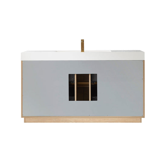 Vinnova Huesca 60" Single Sink Bath Vanity In North American Oak With White Composite Integral Square Sink Top