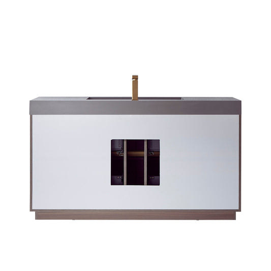 Vinnova Huesca 60" Single Sink Bath Vanity In North Carolina Oak With Grey Composite Integral Square Sink Top