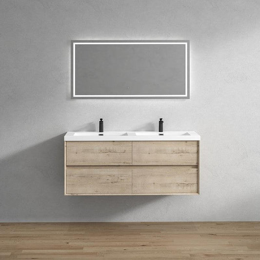 Moreno Bath Kingdee 60" White Oak Wall-Mounted Modern Vanity With Double Reinforced White Acrylic Sinks
