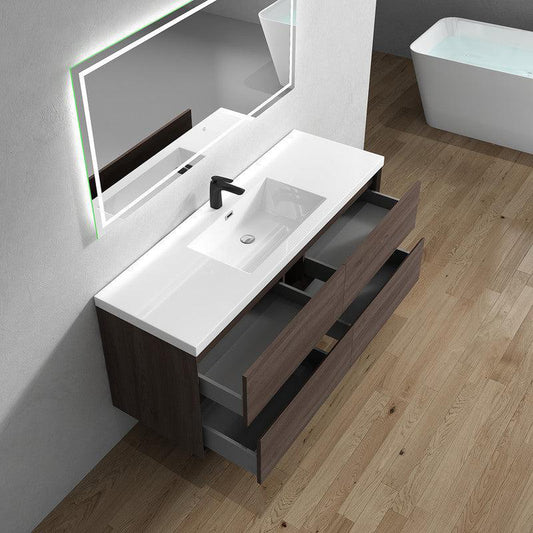 Moreno Bath Kingdee 60" Smoke Oak Wall-Mounted Modern Vanity With Single Reinforced White Acrylic Sink