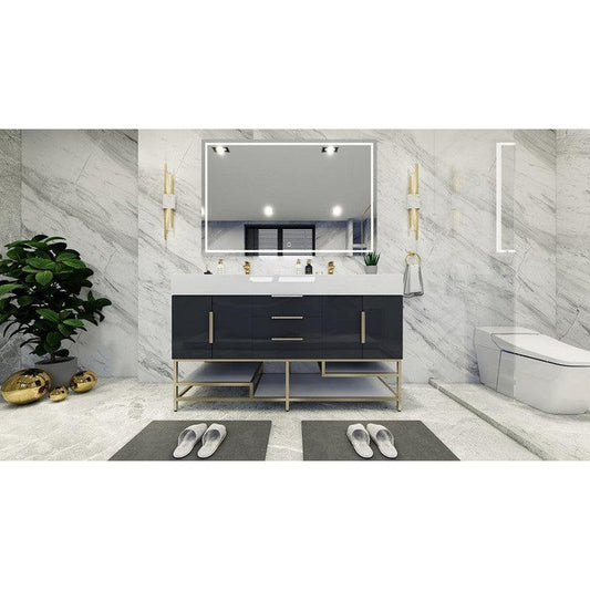 Moreno Bath Bethany 60" High Gloss Gray Freestanding Vanity With Single Reinforced White Acrylic Sink