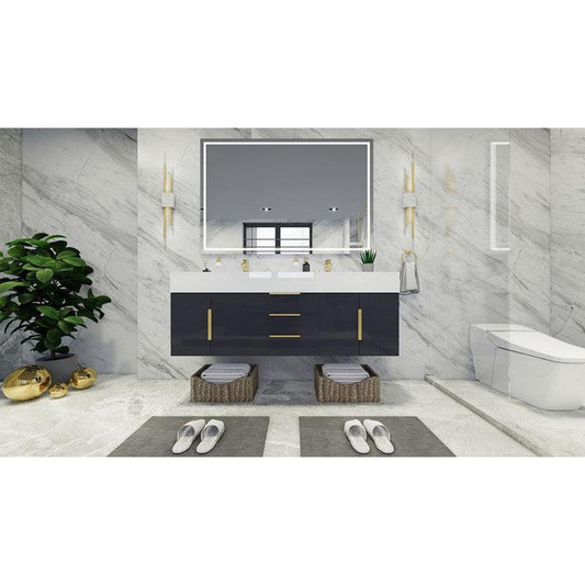 Moreno Bath Bethany 60" High Gloss Gray Wall-Mounted Vanity With Double Reinforced White Acrylic Sinks