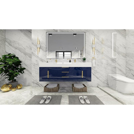 Moreno Bath Bethany 60" High Gloss Night Blue Wall-Mounted Vanity With Double Reinforced White Acrylic Sinks