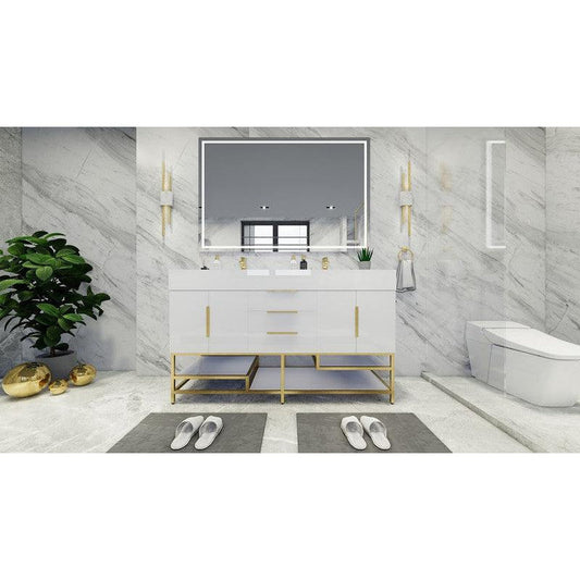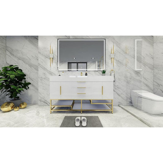 Moreno Bath Bethany 60" High Gloss White Freestanding Vanity With Single Reinforced White Acrylic Sink