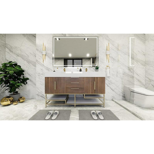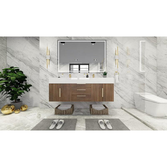Moreno Bath Bethany 60" Rosewood Wall-Mounted Vanity With Double Reinforced White Acrylic Sinks
