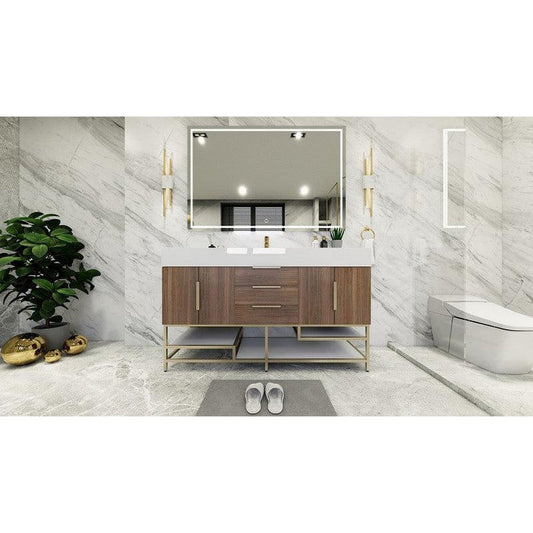 Moreno Bath Bethany 60" Rosewood Freestanding Vanity With Single Reinforced White Acrylic Sink