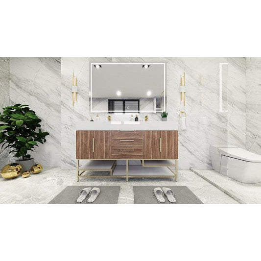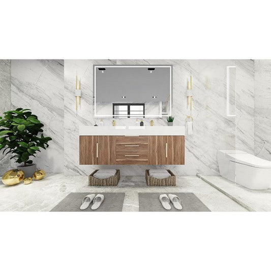 Moreno Bath Bethany 60" White Oak Wall-Mounted Vanity With Double Reinforced White Acrylic Sinks