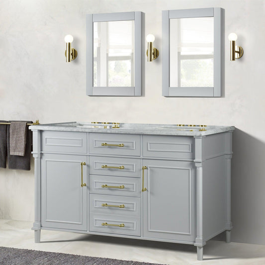 Bellaterra Home Napa 60" 2-Door 4-Drawer Gray Freestanding Vanity Set With Ceramic Undermount Rectangular Sink and White Carrara Marble Top, and Gold Hardware