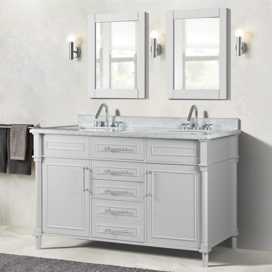 Bellaterra Home Napa 60" 2-Door 4-Drawer White Freestanding Vanity Set With Ceramic Undermount Rectangular Sink and White Carrara Marble Top, and Brushed Nickel Hardware