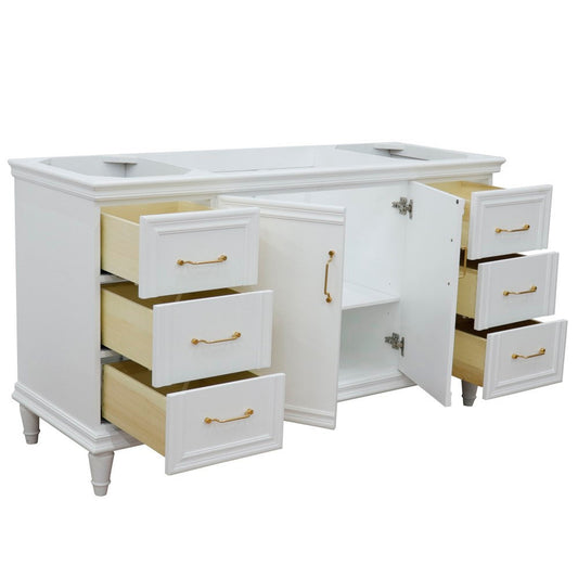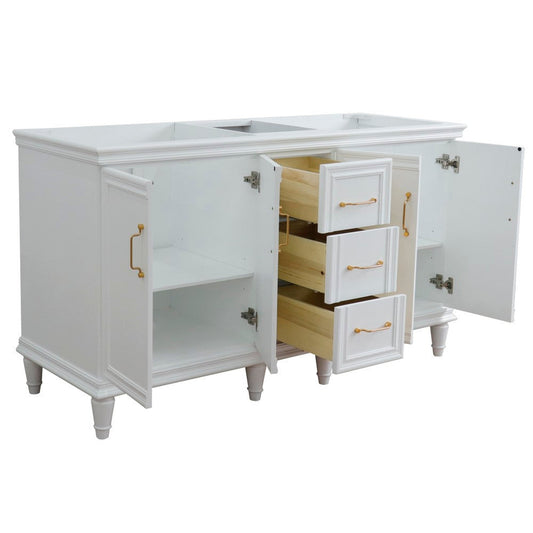 Bellaterra Home Tivoli 60" 4-Door 3-Drawer White Freestanding Double Vanity Base