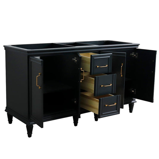 Bellaterra Home Trento 60" 4-Door 3-Drawer Black Freestanding Double Vanity Base