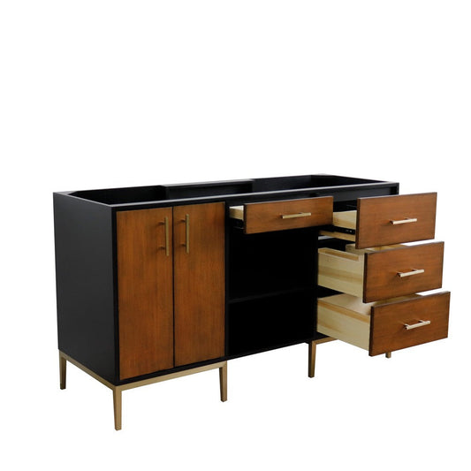 Bellaterra Home Imola 60" 2-Door 4-Drawer 2-Shelf Walnut and Black Freestanding Double Vanity Base