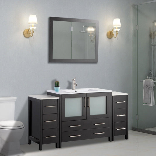 Vanity Art Brescia 60" Single Espresso Freestanding Modern Bathroom Vanity Set With Integrated Ceramic Sink, 2 Side Cabinet and Mirror