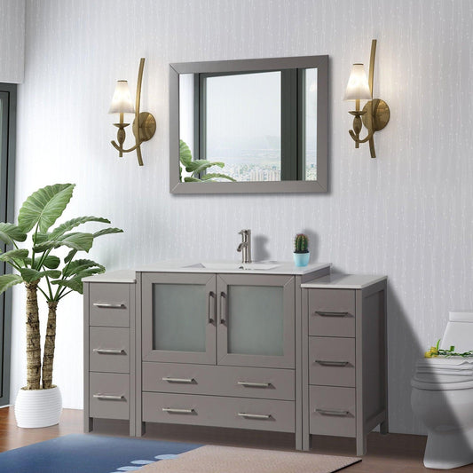 Vanity Art Brescia 60" Single Gray Freestanding Modern Bathroom Vanity Set With Integrated Ceramic Sink, 2 Side Cabinets and Mirror