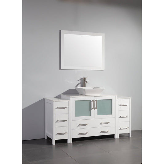 Vanity Art Ravenna 60" Single White Freestanding Vanity Set With White Engineered Marble Top, Ceramic Vessel Sink, 2 Side Cabinets and Mirror