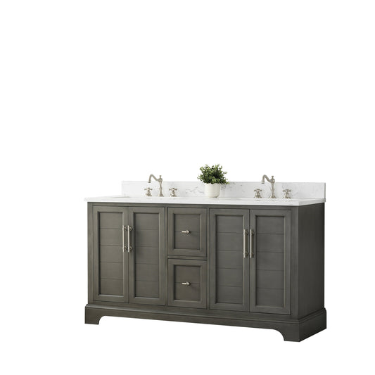Vanity Art Vannes 60" Double Silver Gray Freestanding Vanity Set With Engineered Marble Countertop and Integrated Sink